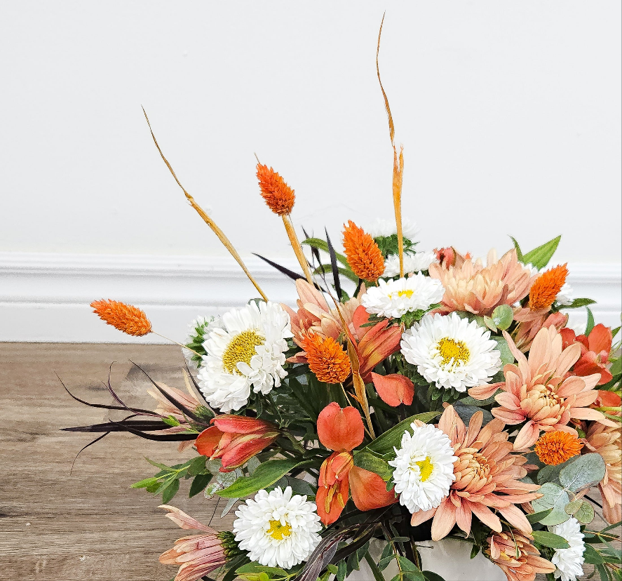 Choose from stunning, traditional Cornucopia Centerpiece with a modern twist or a bunch of seasonal fall flowers.